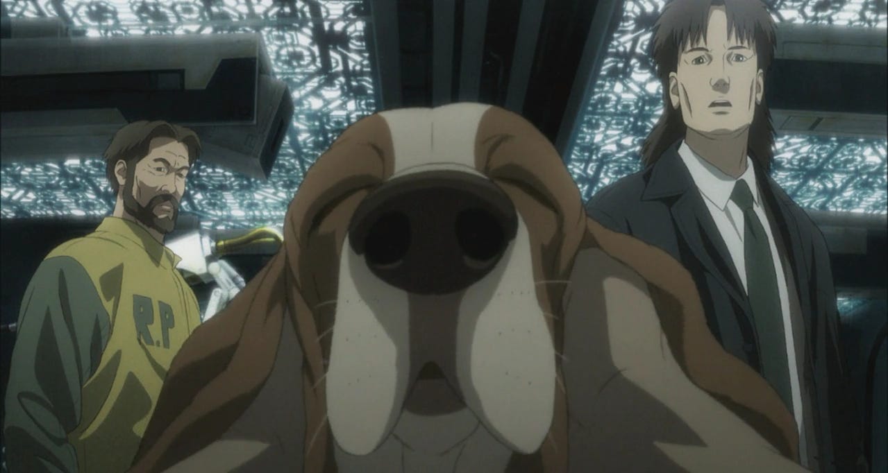 Innocence has no Motoko for a long while. Batou is cool and a cyborg taking care of a charming hound, but still less intriguing than Motoko. If he deals with the same doubts and questions about identity and humanity as Motoko, he shows it less. It’s good that he avoids philosophical verbiage because Motoko already played the role, but this made her more interesting - and she was the star of GITS - and to compensate, his new partner fills in for Batou’s quietude.
