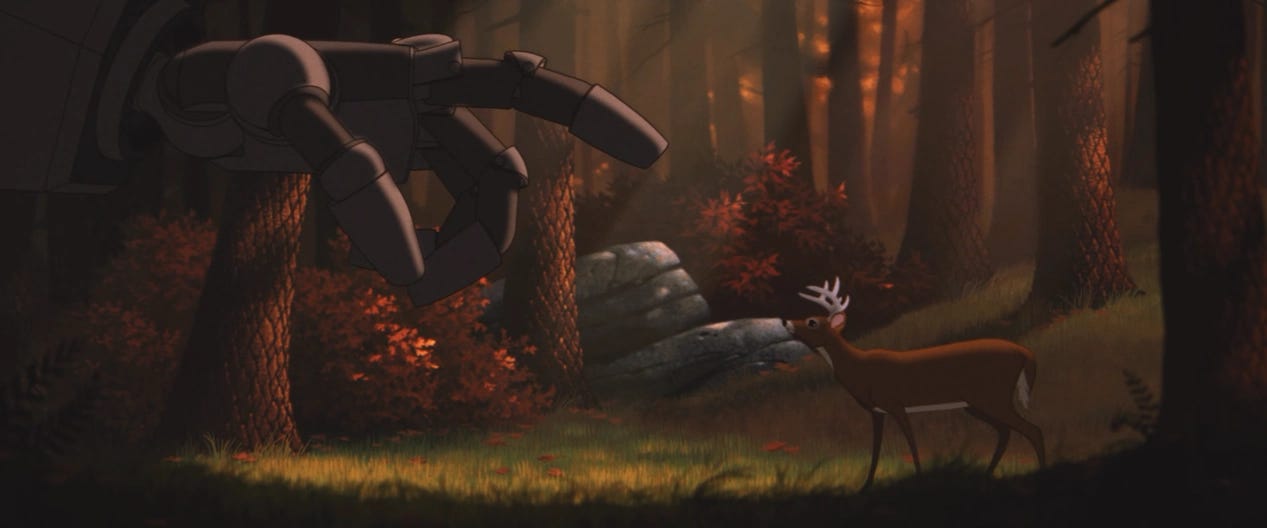 In The Iron Giant, friendship endures regardless of species. A kid playing with a puppy will try to teach it basic actions and tricks, and the iron puppy responds as well as its towering arms and growling mouth can.